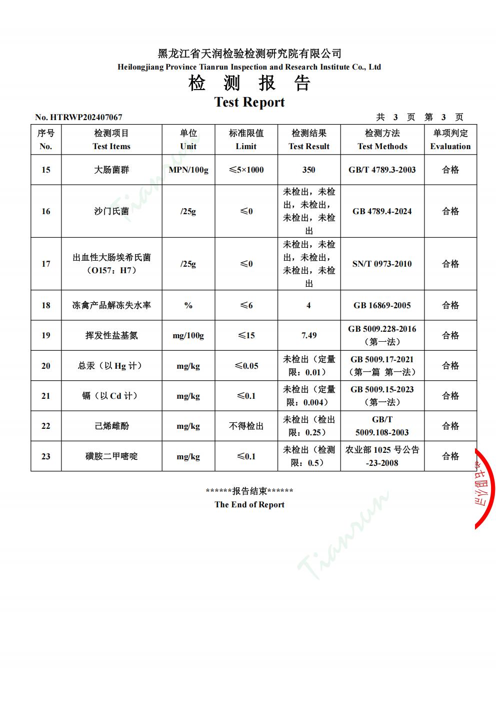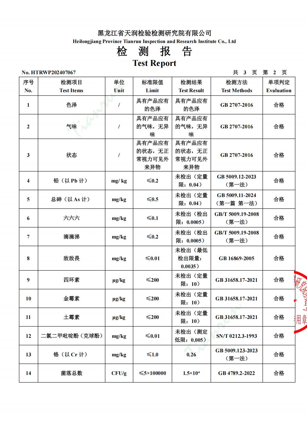 2025年1月份鸡肉产品检测报告