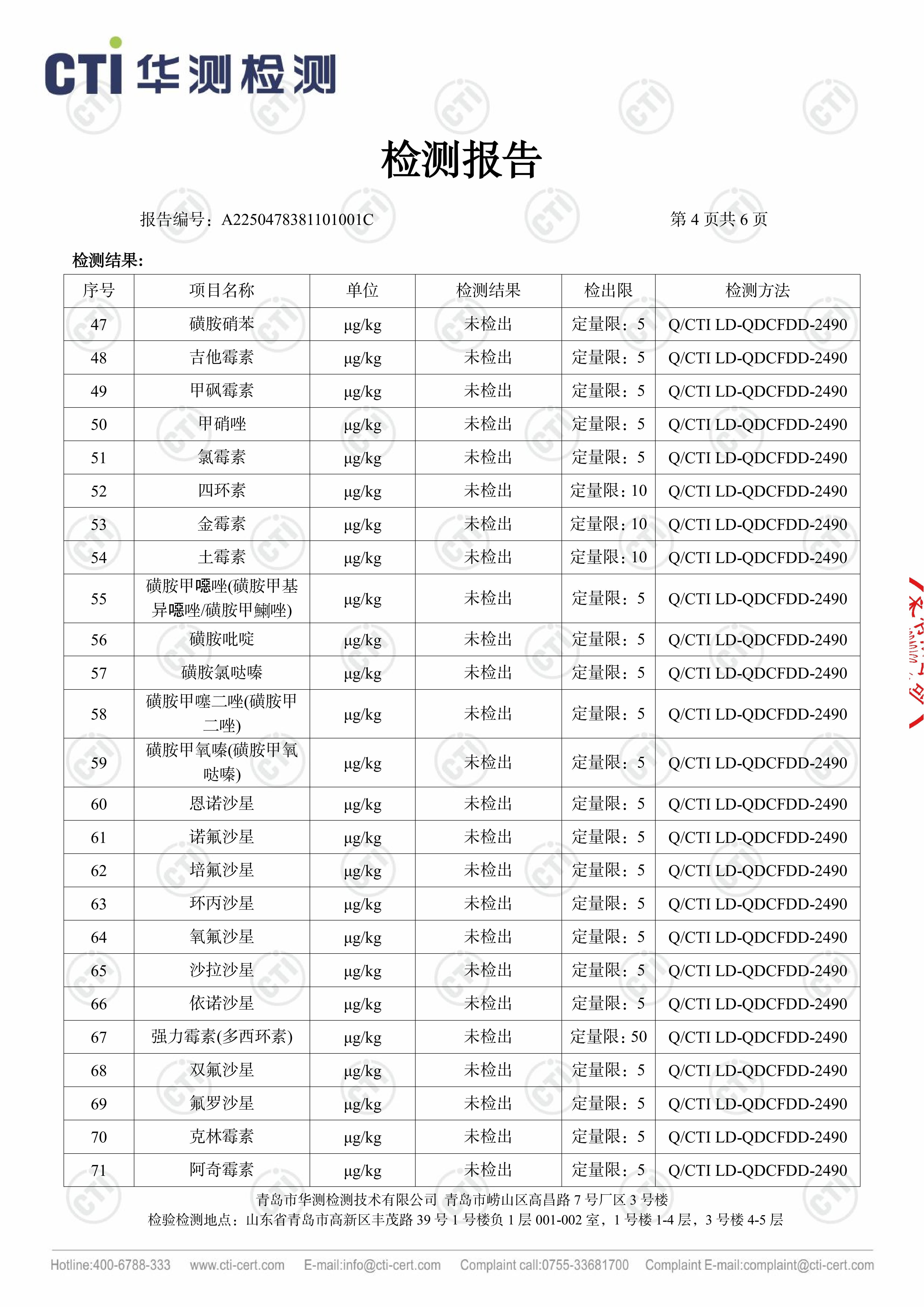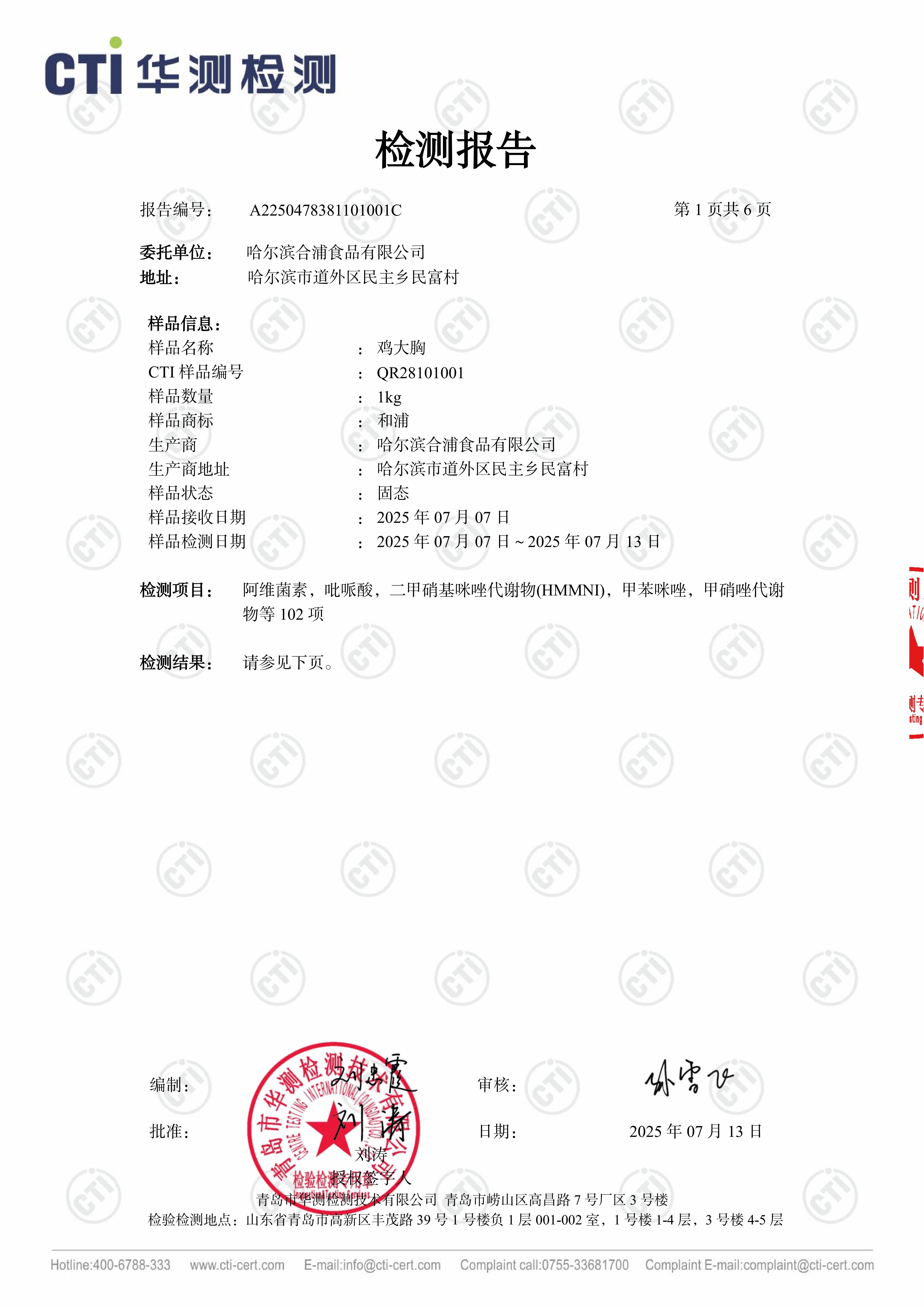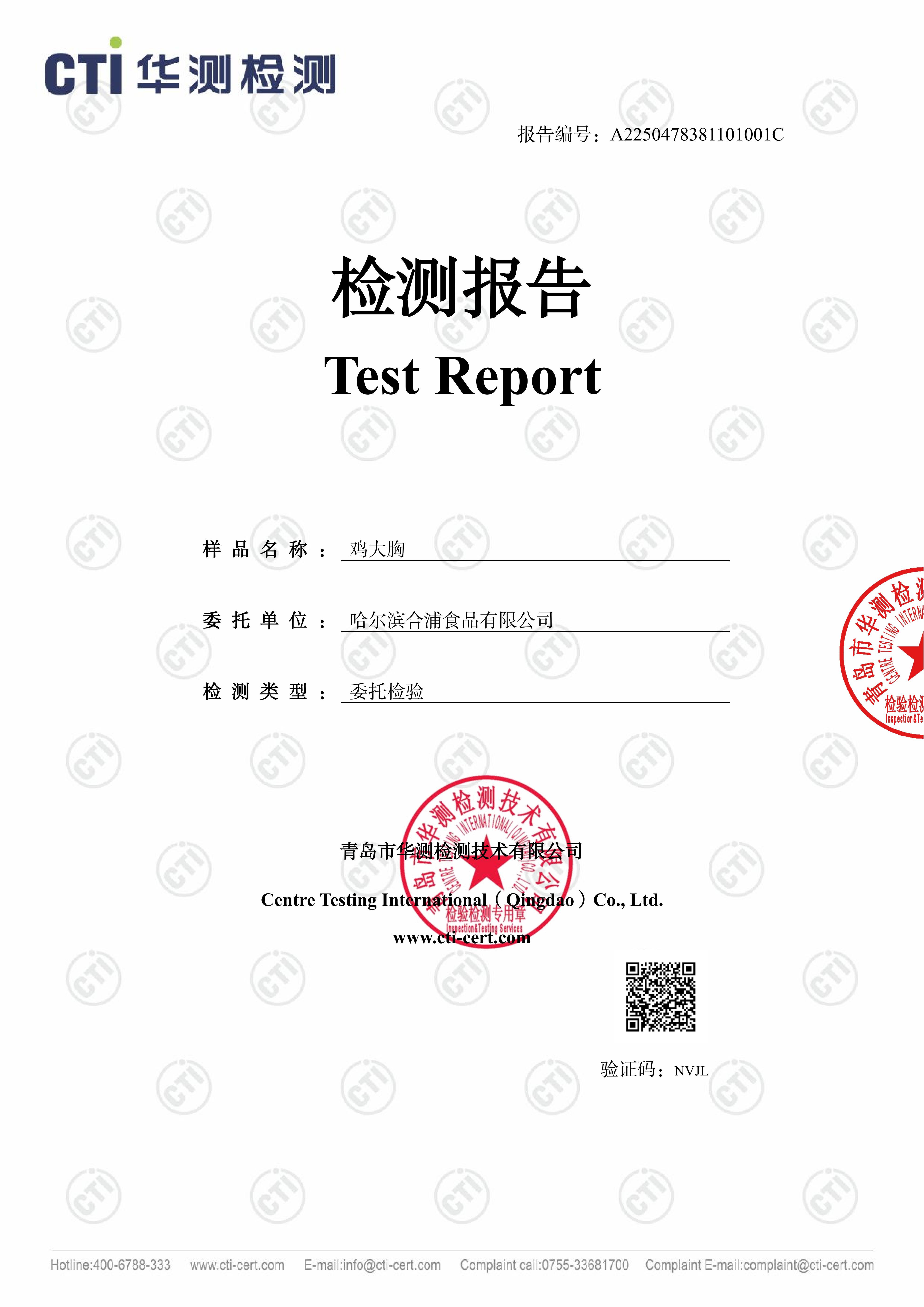 华测102项检测鸡肉产品报告