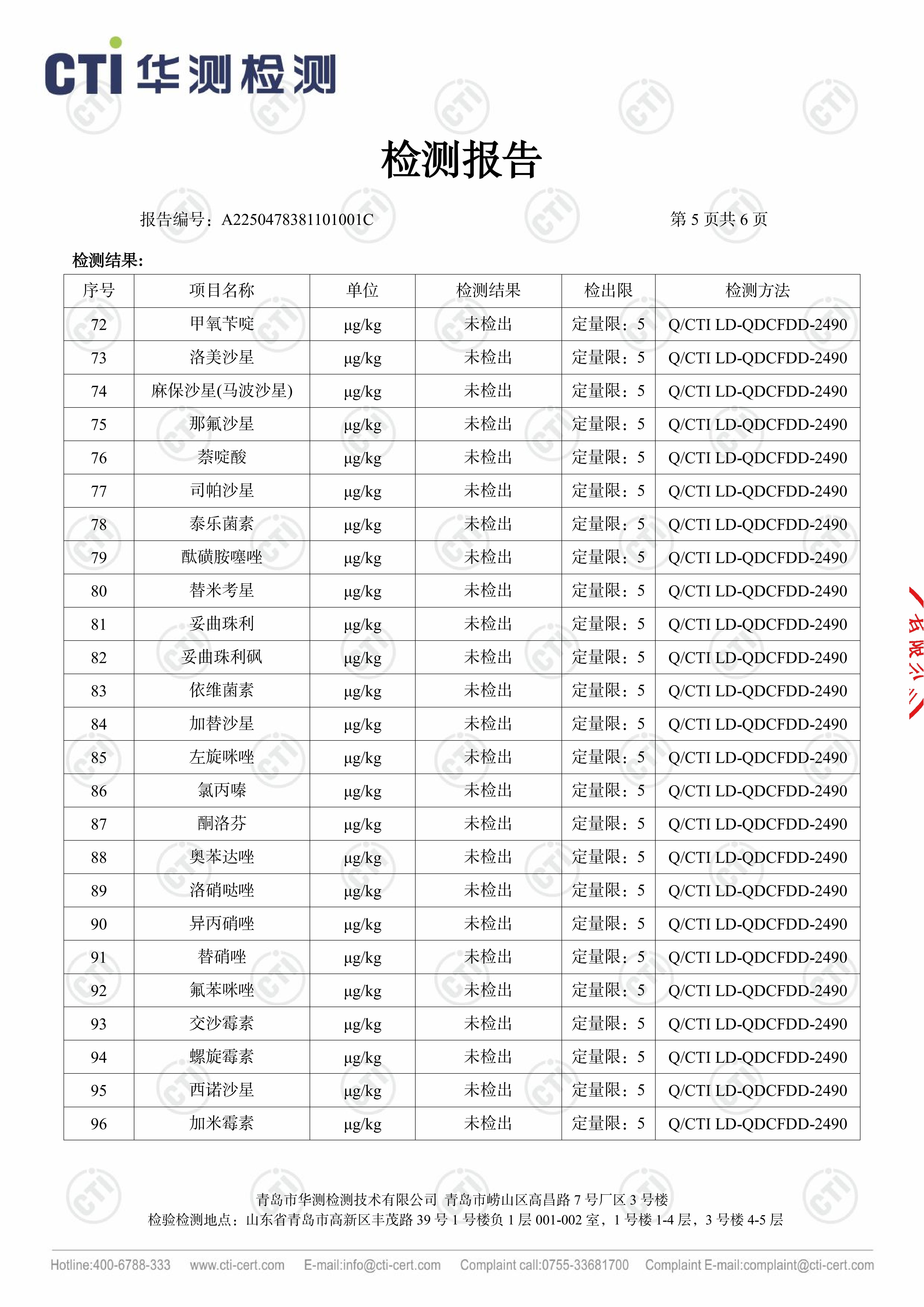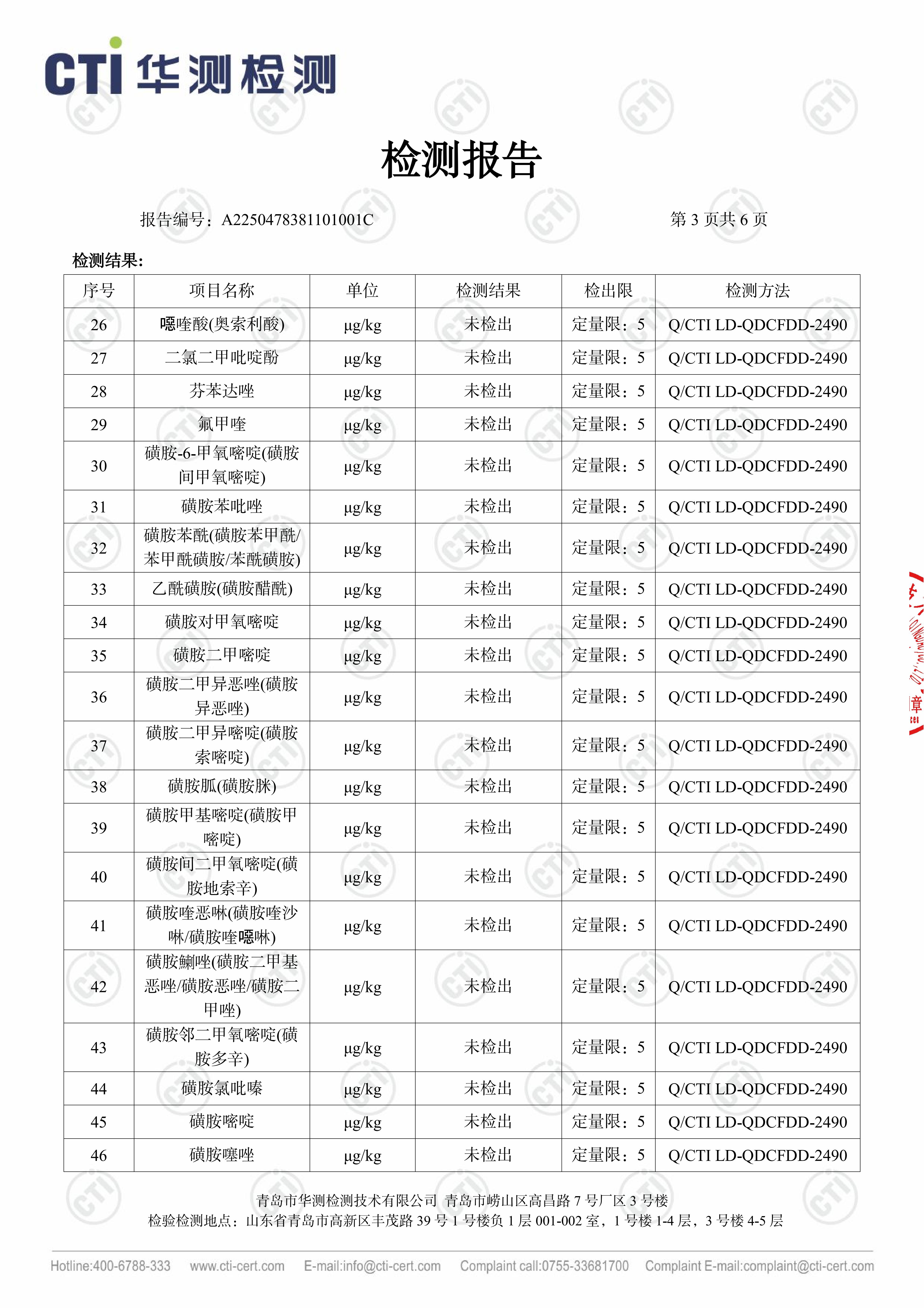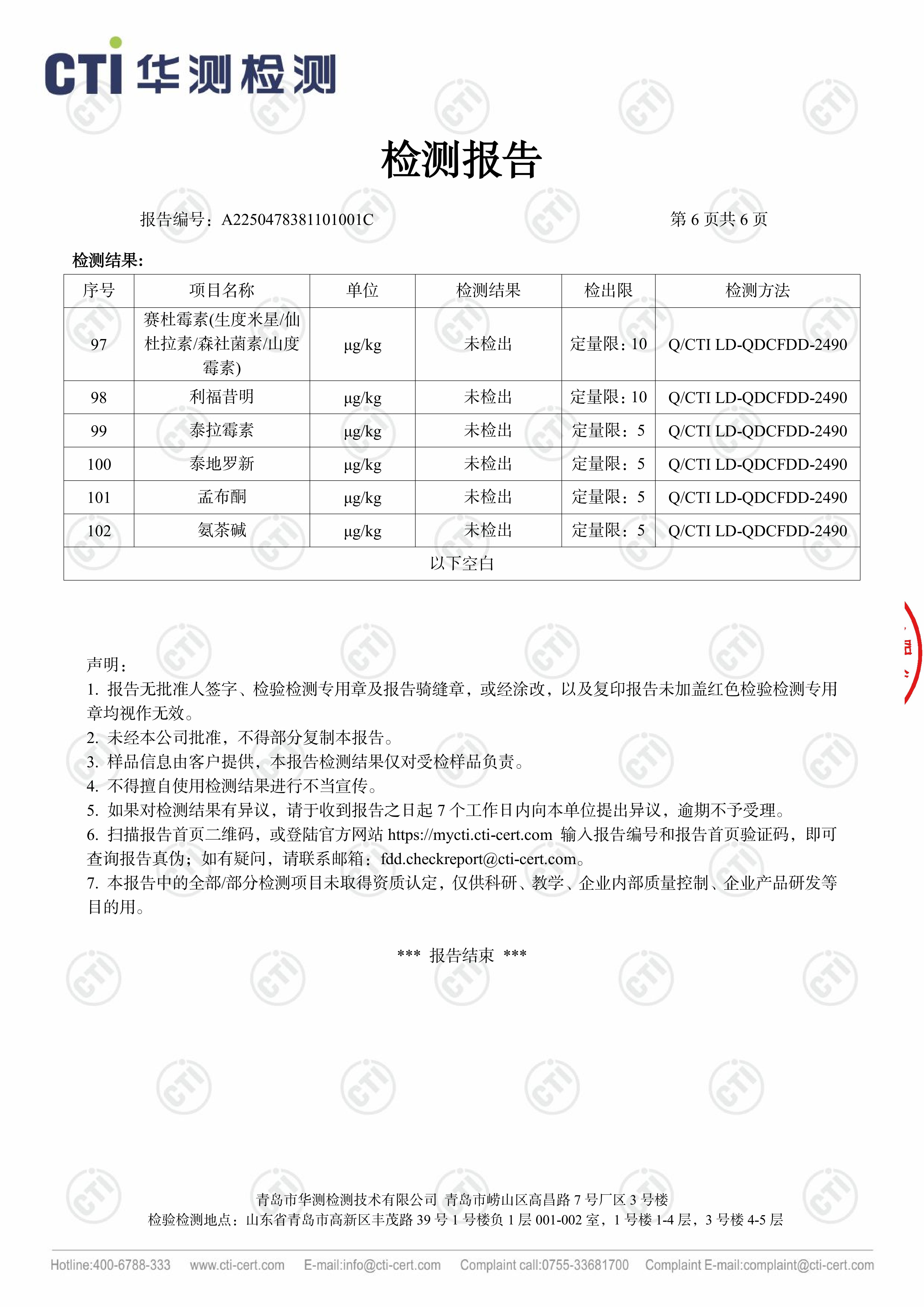 华测102项检测鸡肉产品报告