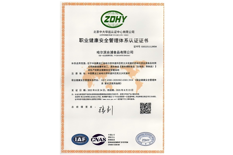 职业健康安全管理体系认证证书