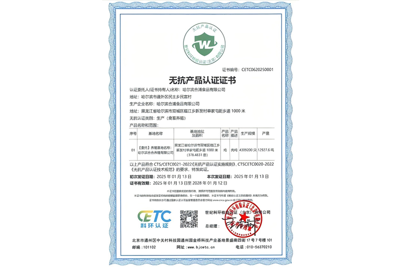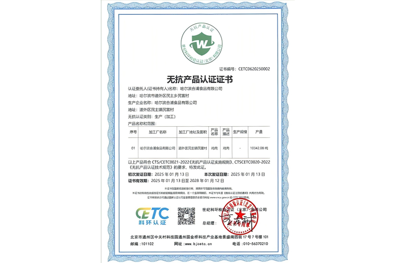 无抗产品认证证书