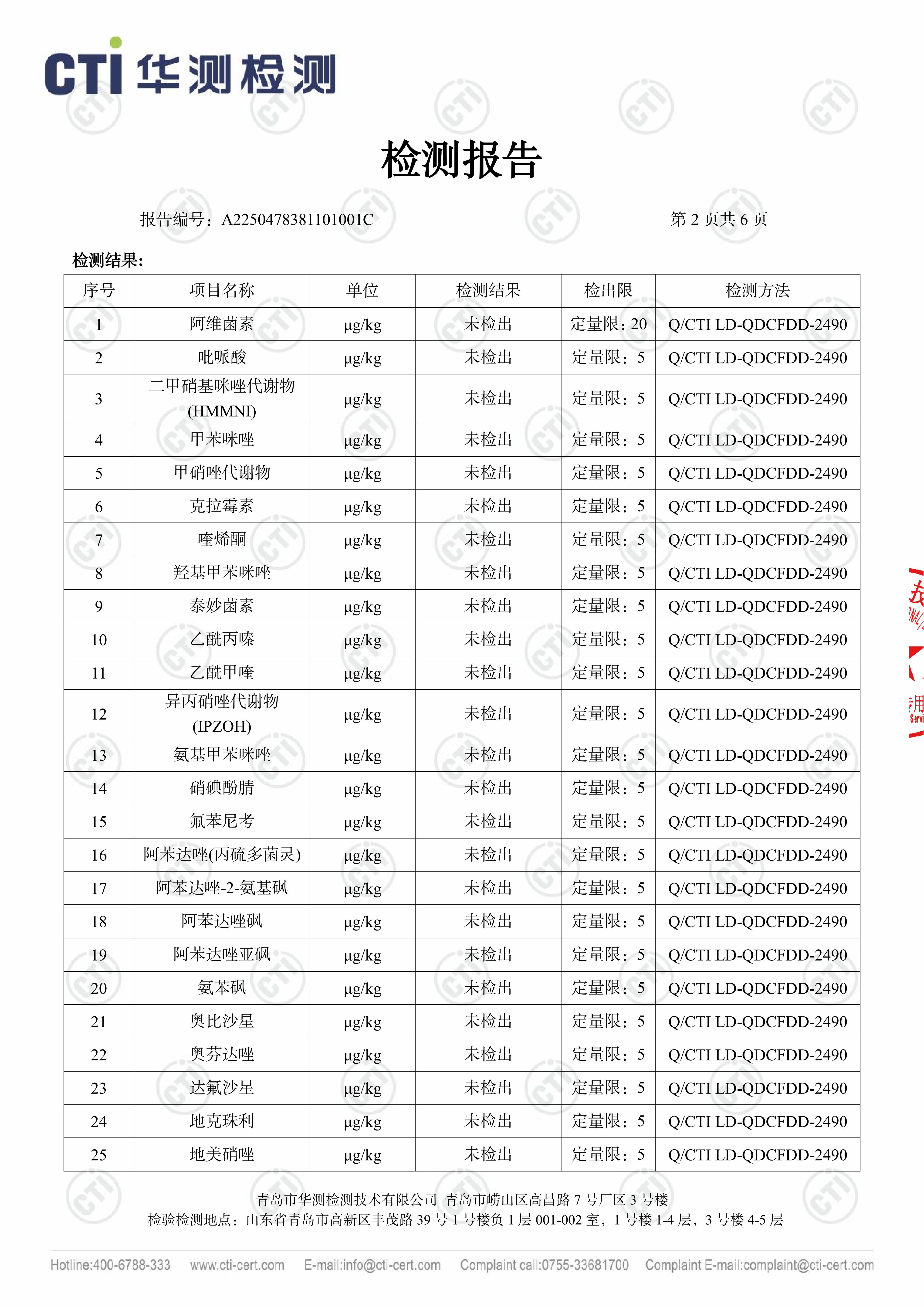 华测102项检测鸡肉产品报告